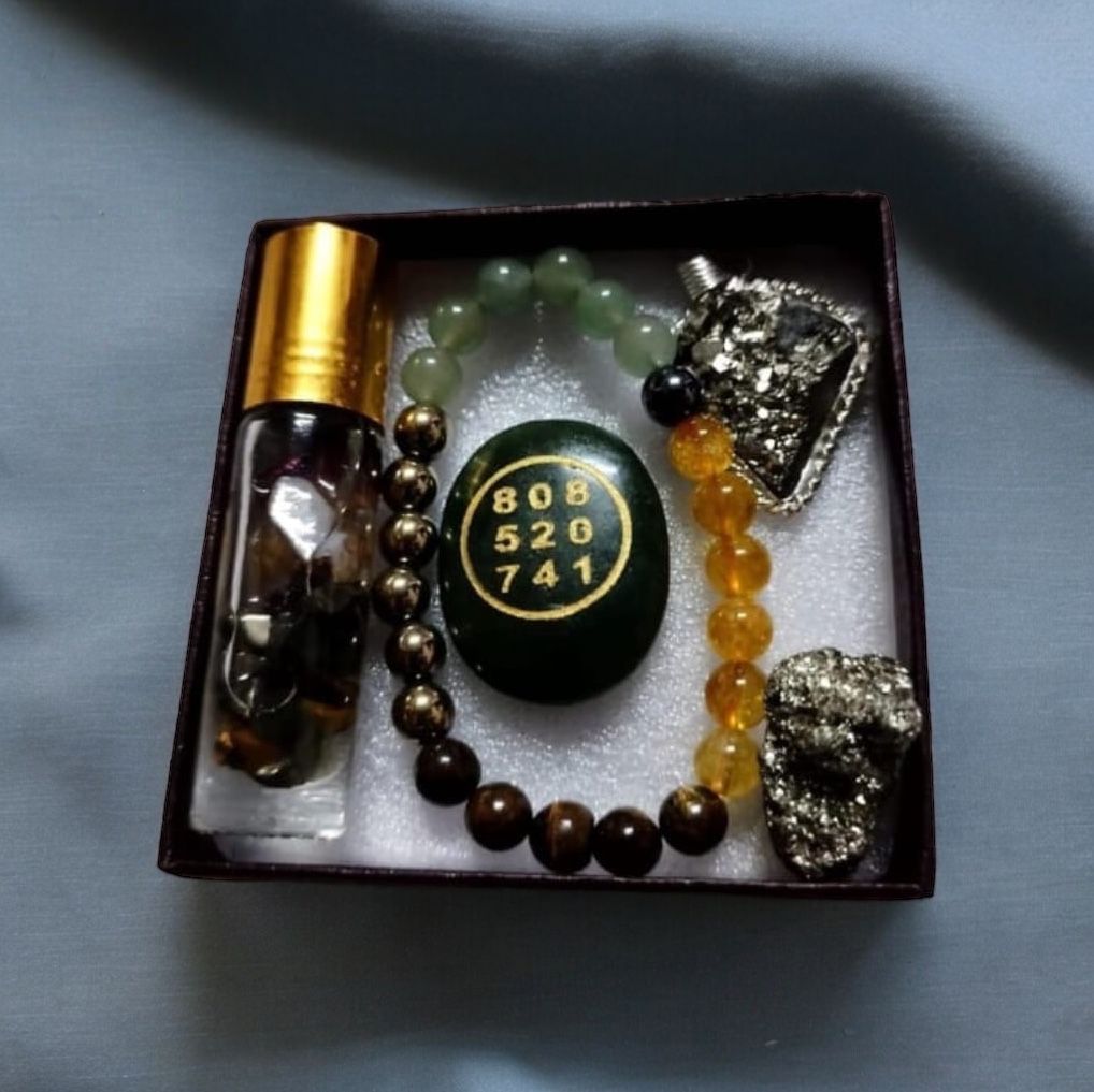 A Money Magnet Set typically includes crystals, bracelets, or pyramids designed to attract wealth, prosperity, and financial success. These sets often feature stones like Pyrite, Citrine, Green Aventurine, and Tiger Eye, known for their energy-enhancing properties.